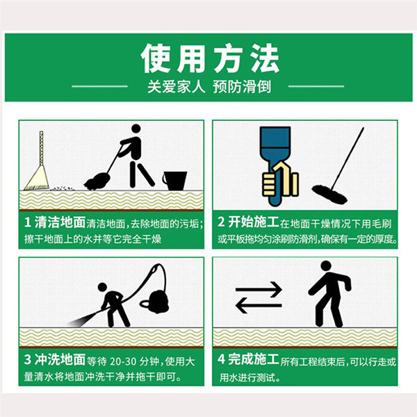防滑劑是一種增加地表面靜摩擦的液體,可用于天然石材、硬瓷磚、木地板表面,如瓷磚、大鋪地磚、馬賽克地磚、水磨石、石板、花崗石、大理石、釉面磚、陶瓷及陶瓷浴缸、沐浴間地面以及其它石材或無(wú)機(jī)材料表面。